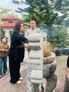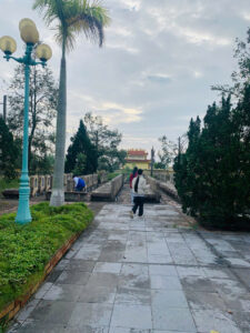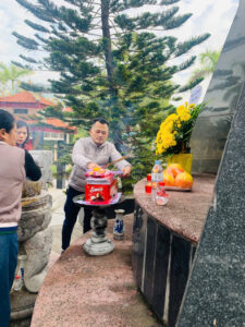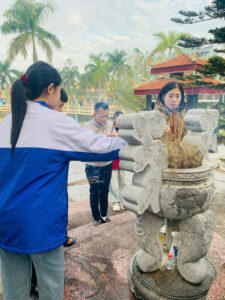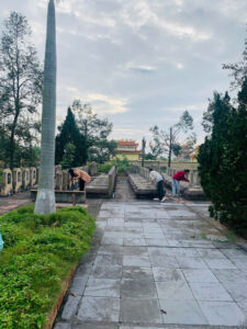 Không khí se lạnh của buổi sáng MÙA đông như hòa vào không gian tĩnh lặng, thành kính nơi nghĩa trang. Hàng bia trắng nằm thẳng tắp dưới những hàng cây xanh, ghi danh những người con đã ngã xuống vì độc lập, tự do của Tổ quốc. Trước đài tưởng niệm, từng thành viên của đội tuyển, trên tay áo khoác in logo trường, lặng lẽ dâng lên những nén hương thơm ngát. Nén hương được thắp lên không chỉ để tưởng nhớ quá khứ hào hùng, mà còn như một lời hứa về một tương lai tươi sáng, nơi thế hệ trẻ hôm nay sẽ tiếp bước cha anh, cống hiến trí tuệ, xây dựng đất nước. Ánh mắt của từng thành viên đội tuyển sáng lên một sự nghiêm túc và quyết tâm khác thường. Chúng tôi cúi đầu mặc niệm trong giây phút thiêng liêng, như để nạp thêm năng lượng từ sự hy sinh cao cả của các anh.