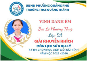 Hòa chung trong không khí thi đua sôi nổi của năm học, thầy và trò trường THCS Quảng Thành tiếp tục ghi dấu ấn với những thành tích xuất sắc tại kỳ thi học sinh giỏi cấp Tỉnh năm học 2025 – 2026.